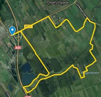 De start is op het parkeerterrein bij hotel Van der Valk in Wolvega, direct aan de A32. Op een deel van de route zijn geen honden toegestaan.