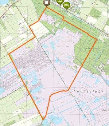 De tocht begint op het parkeerterrein bij het fietspad door het Fochterloërveen.