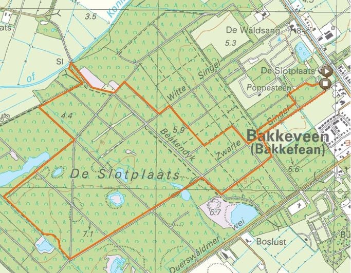 De start is bij Het Witte Huis in Olterterp. De route is ruim 5 km lang.
