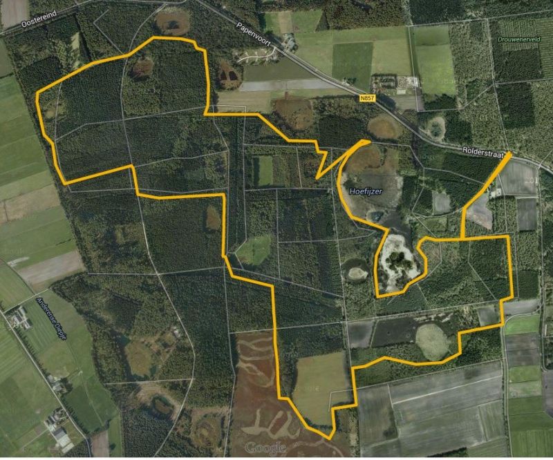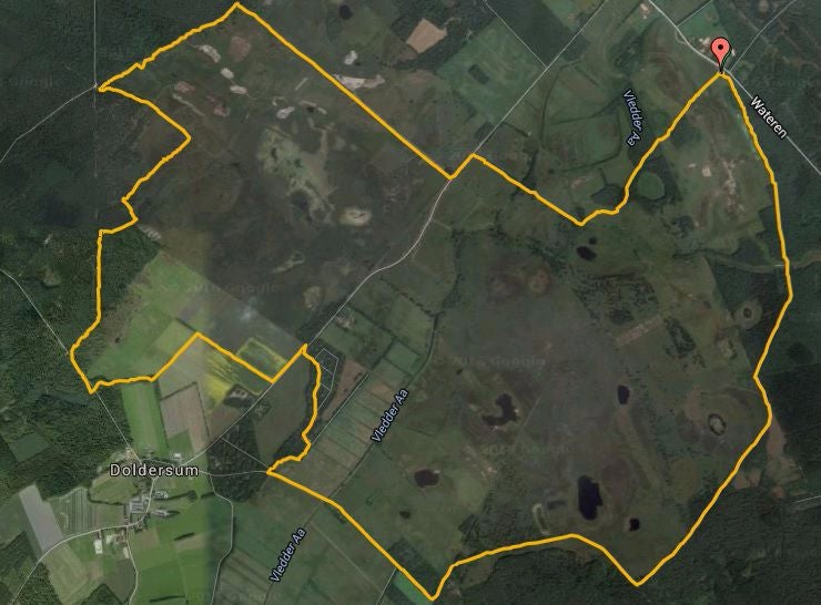 De start is in Wateren aan de weg naar Diever. Honden zijn niet toegestaan.