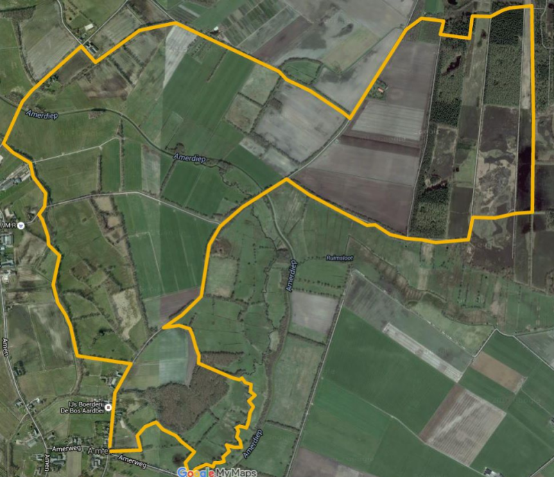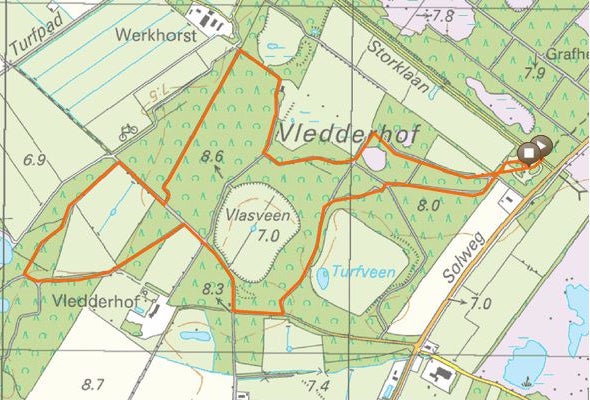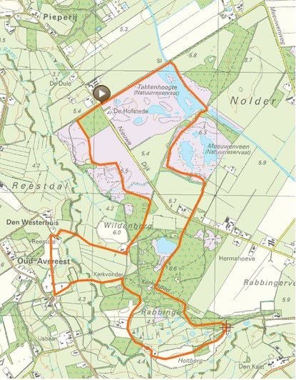 De start is op het parkeerterrein bij de hunebedden aan de weg (N353) van Wapserveen naar Havelte. De afstand is ruim 9 km.
