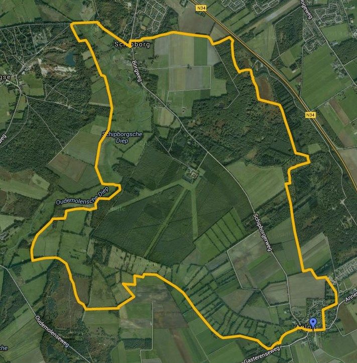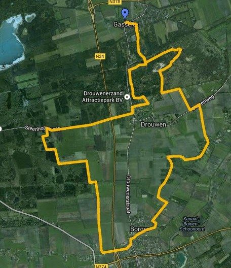 Een tocht van 9,4 km, die begint tussen Rolde en Borger.