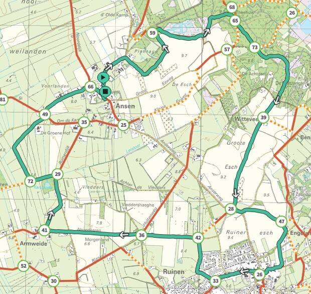 Deze tocht van 12,5 km begint bij restaurant tante Ans aan de Kerkdijk in Ansen.