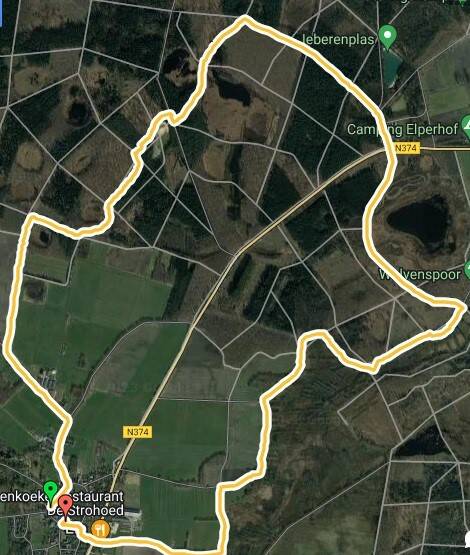 De route van ruim 10 km begint bij hotel restaurant café Koekoekshof in Elp.